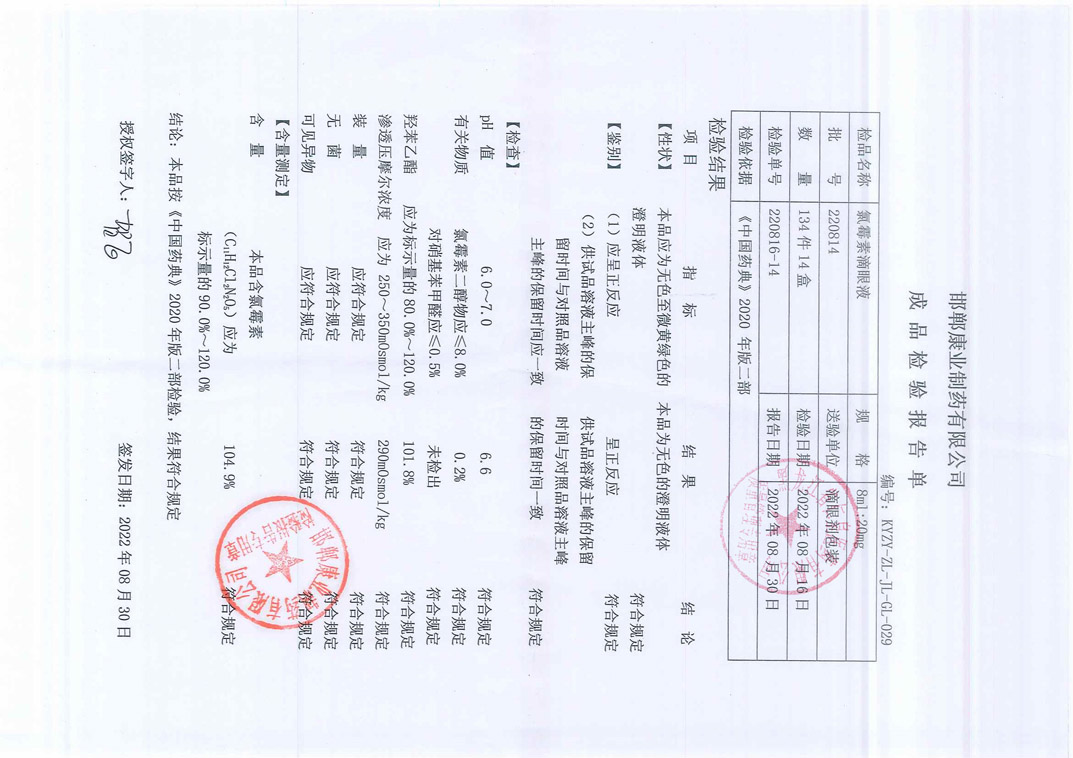 氯霉素滴眼液2208