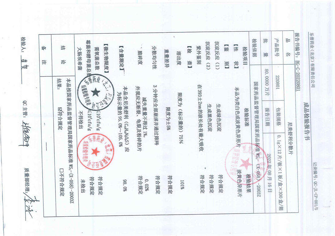 尼美舒利分散片220