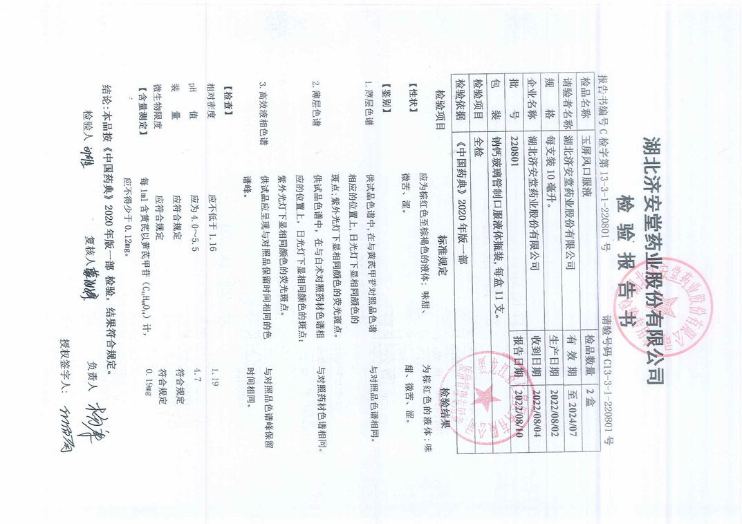 玉屏风口服液2208