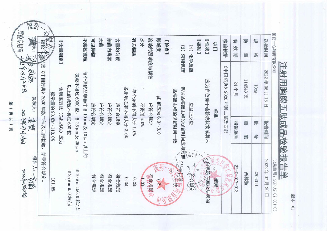 注射用胸腺五肽220