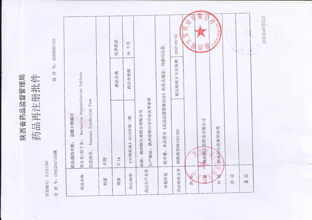 盐酸小檗碱片陕西颐生