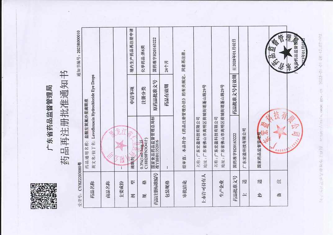 盐酸左氧氟沙星滴眼液