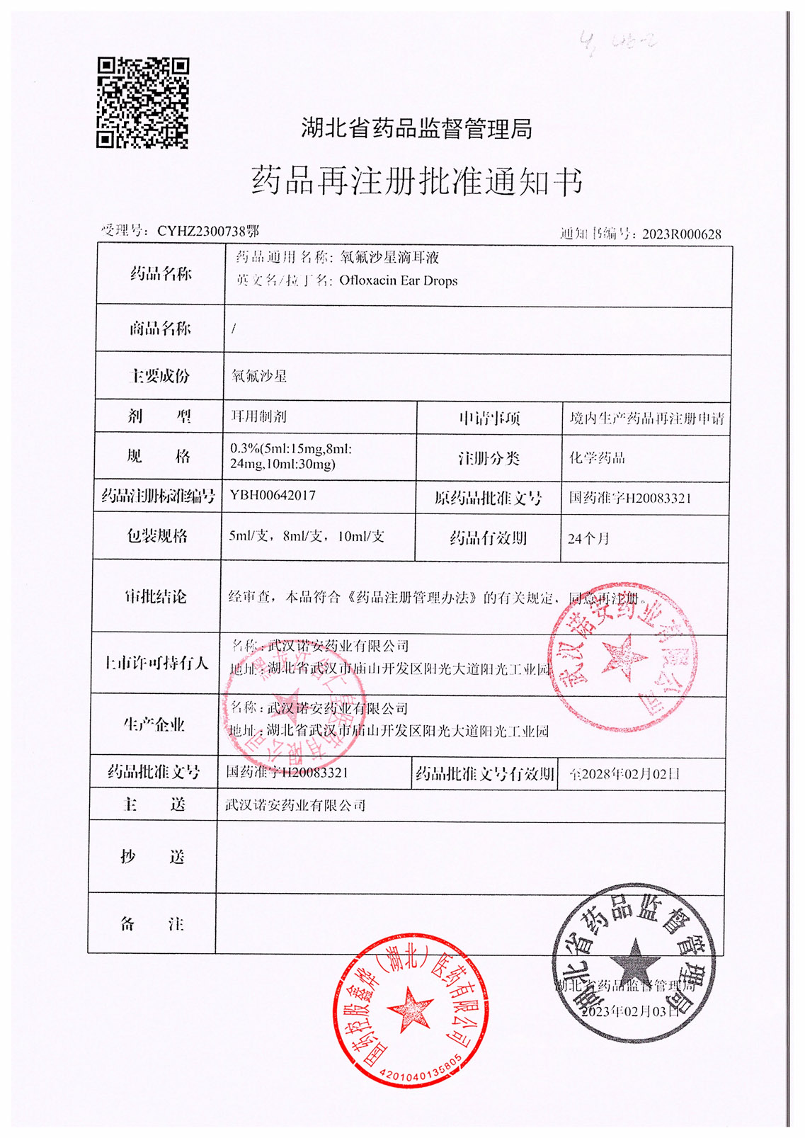 氧氟沙星滴耳液武汉诺