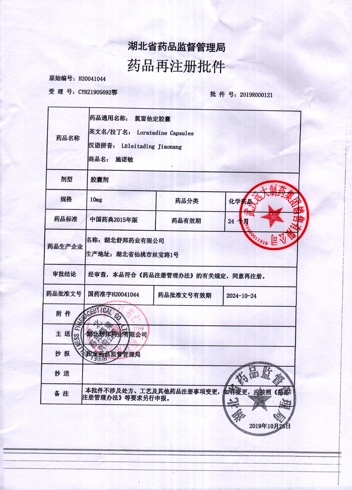 氯雷他定胶囊湖北舒邦