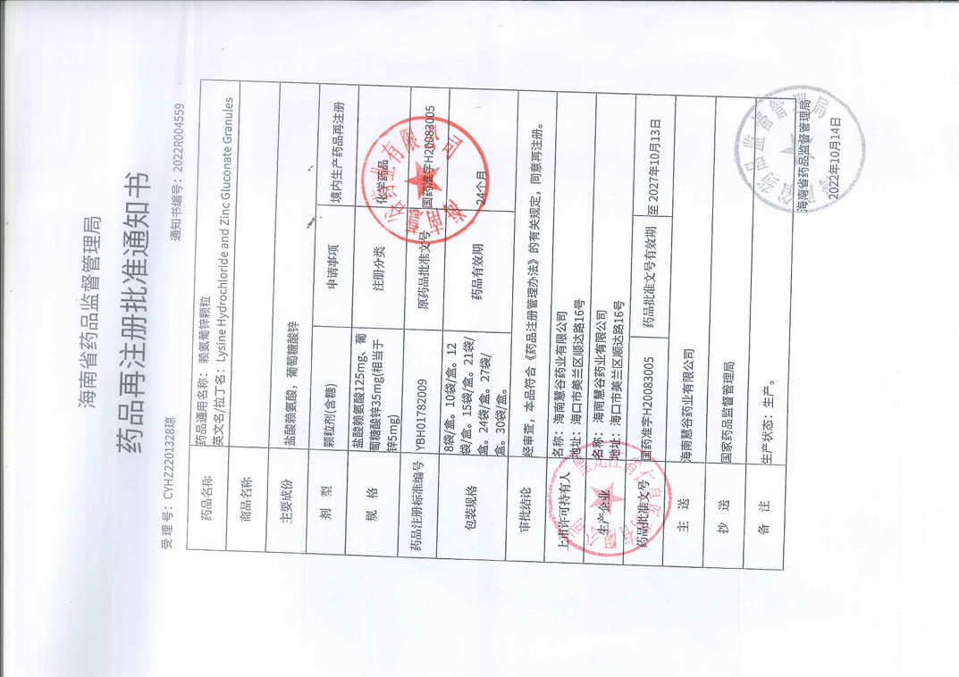 赖氨葡锌颗粒海南慧谷