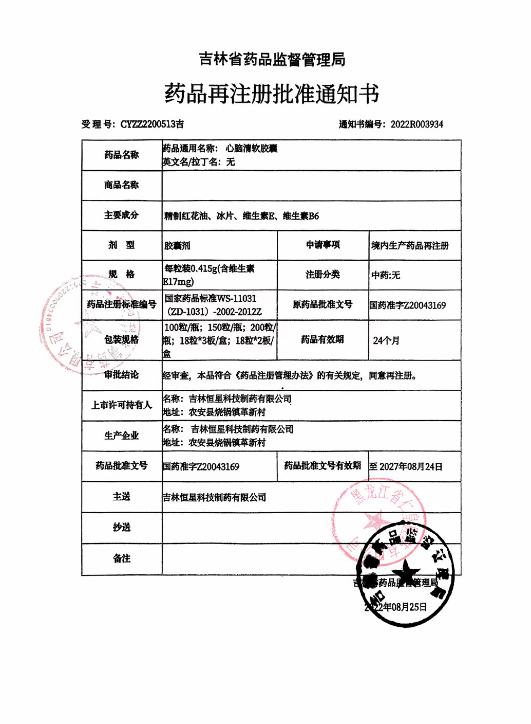心脑清软胶囊吉林恒星