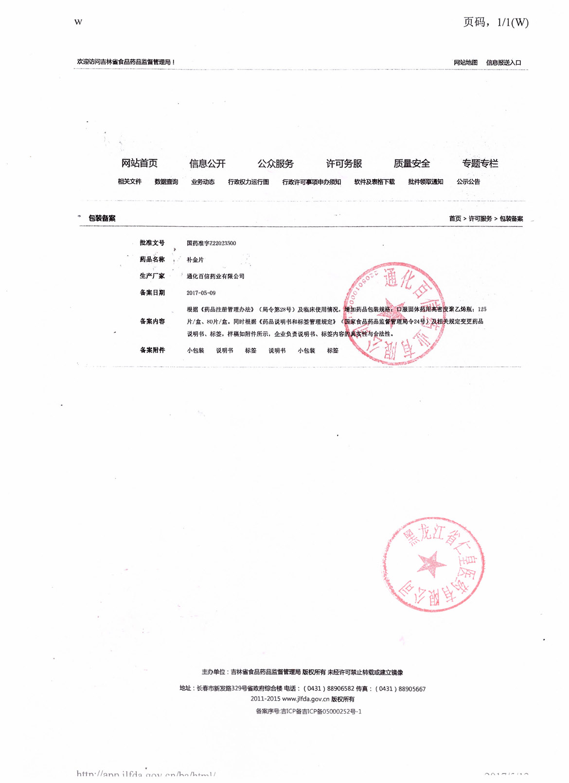 补金片通化百信药业有