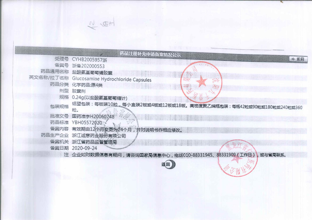 盐酸氨基葡萄糖胶囊浙