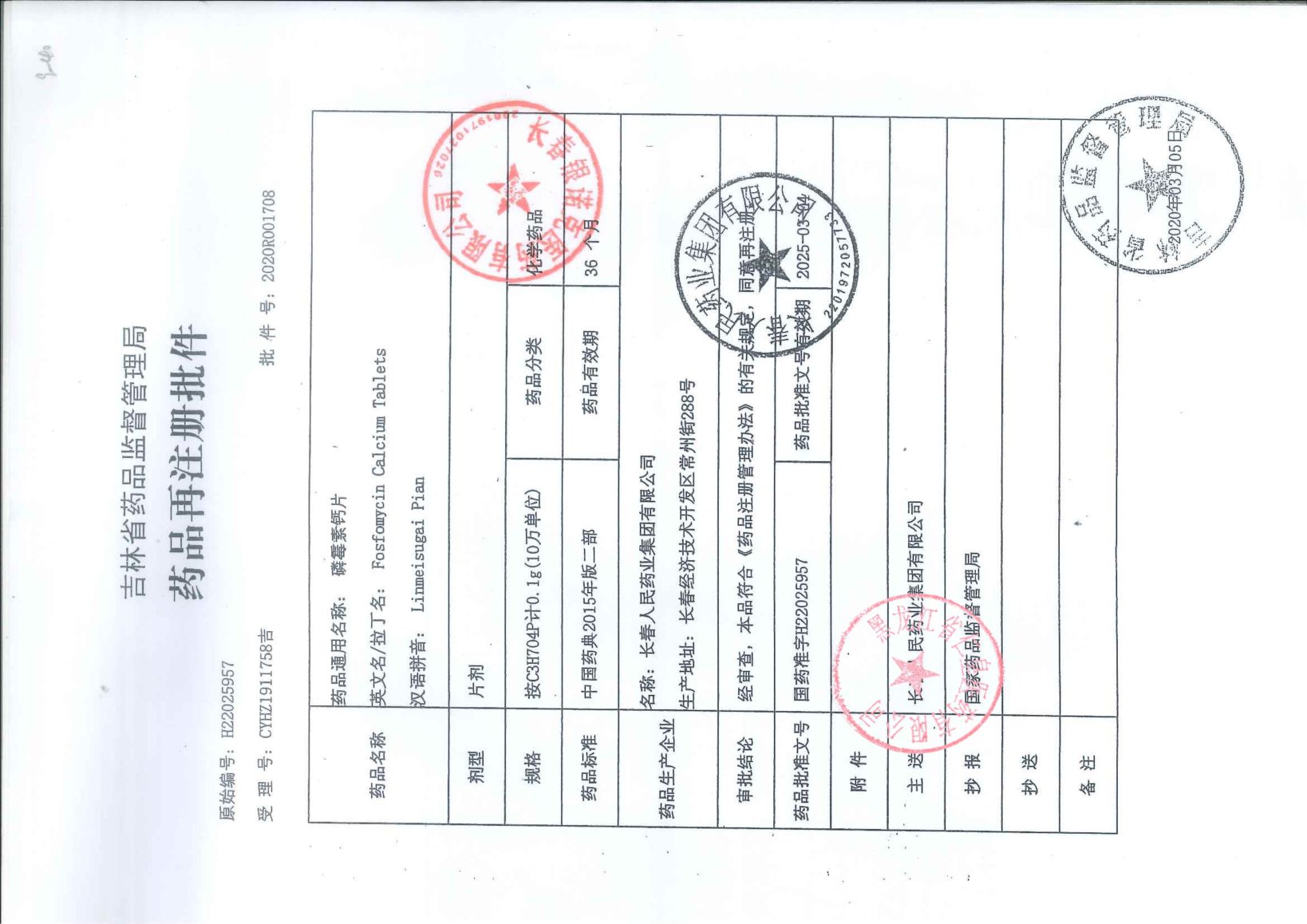 磷霉素钙片长春人民药