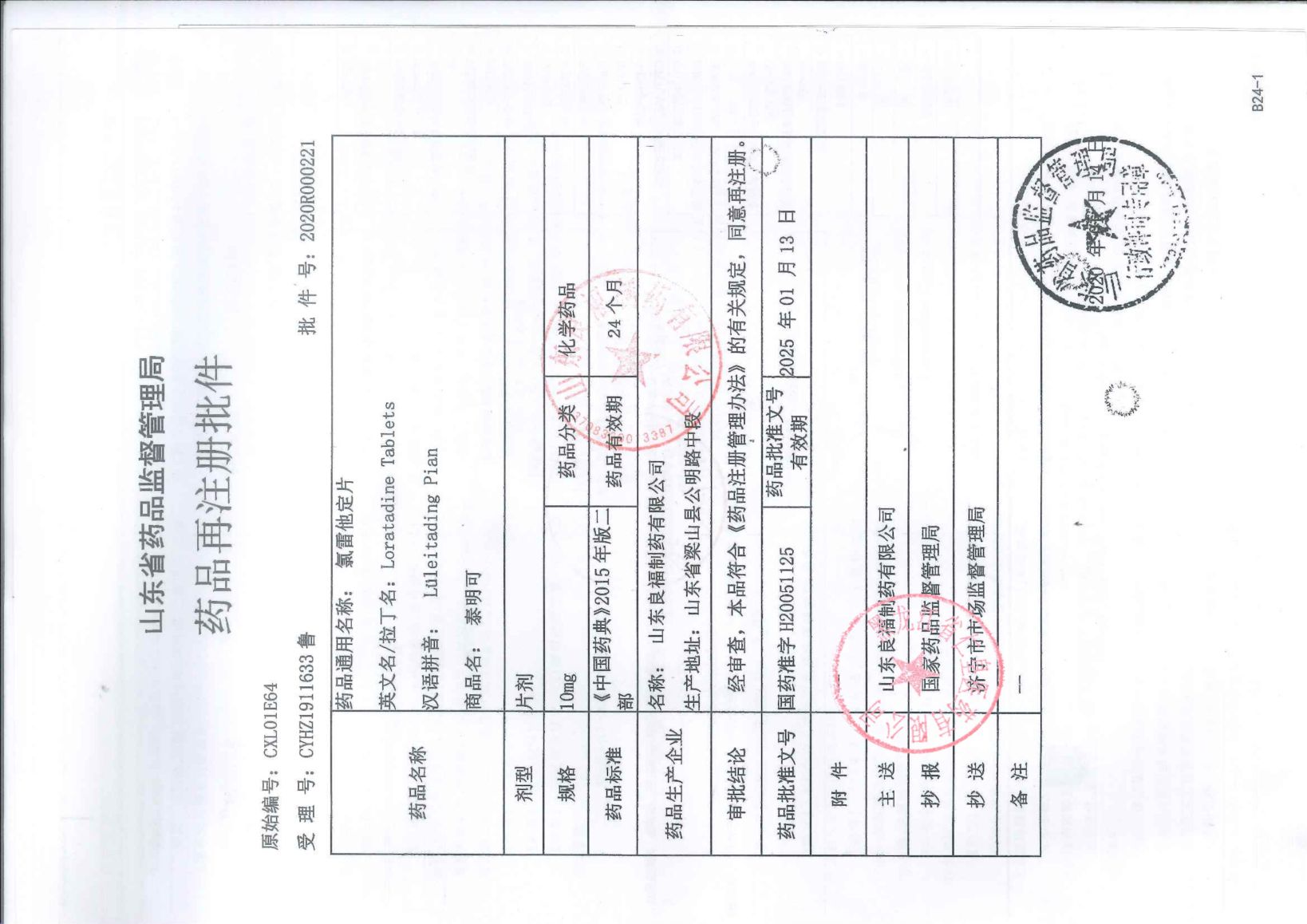 氯雷他定片山东良福制