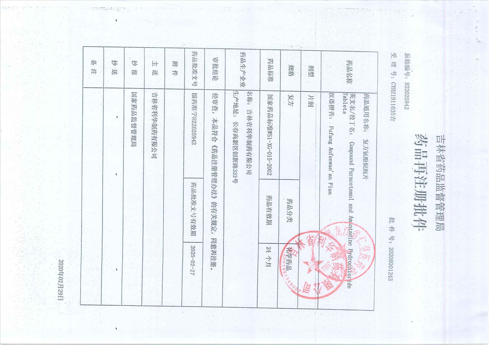复方氨酚烷胺片吉林省