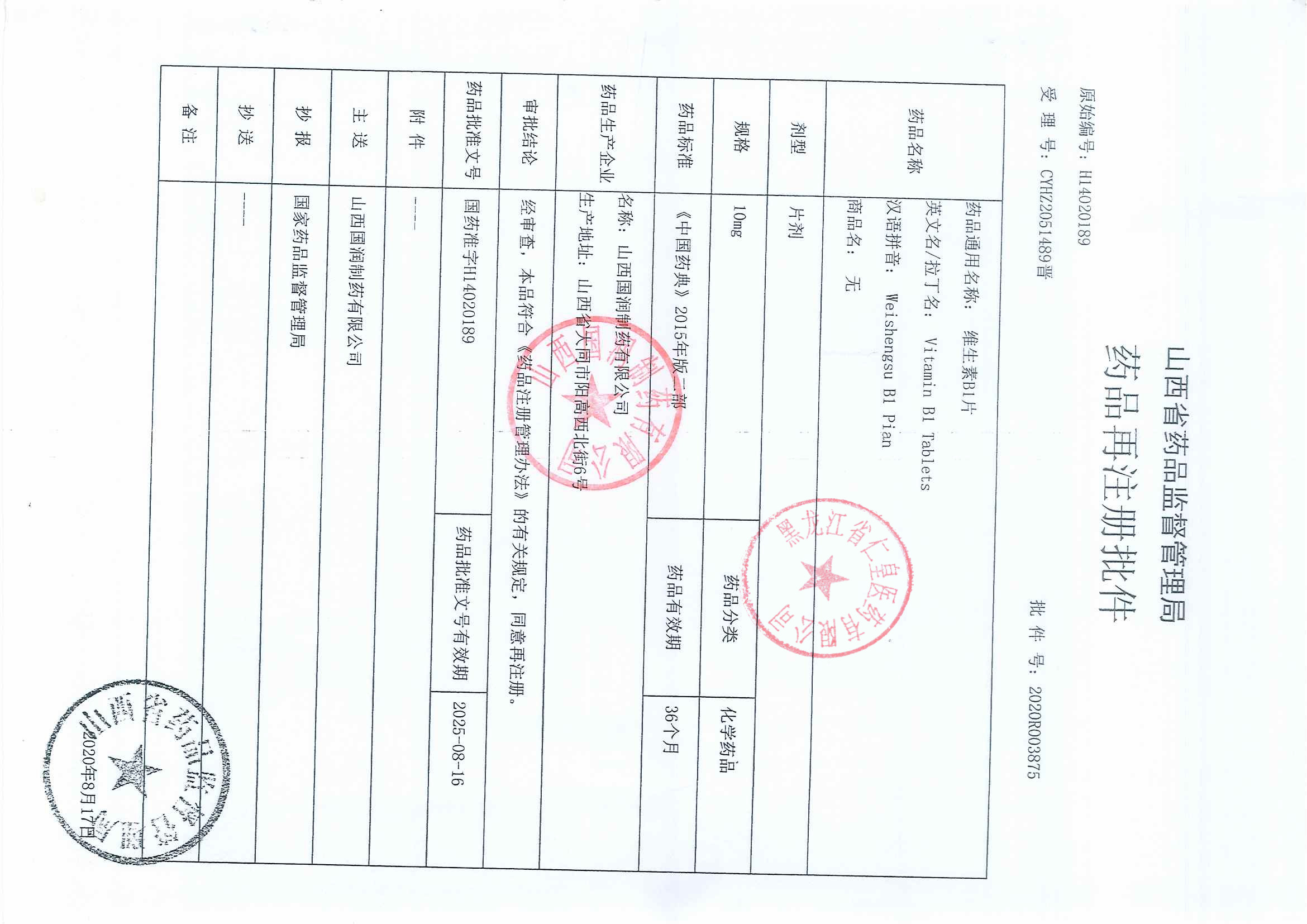 维生素B1片山西国润