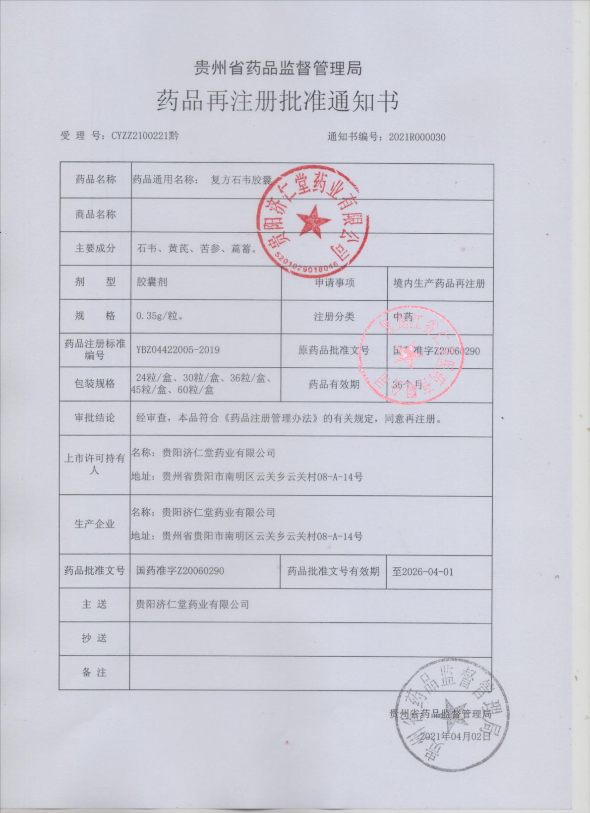 复方石韦胶囊贵阳济仁