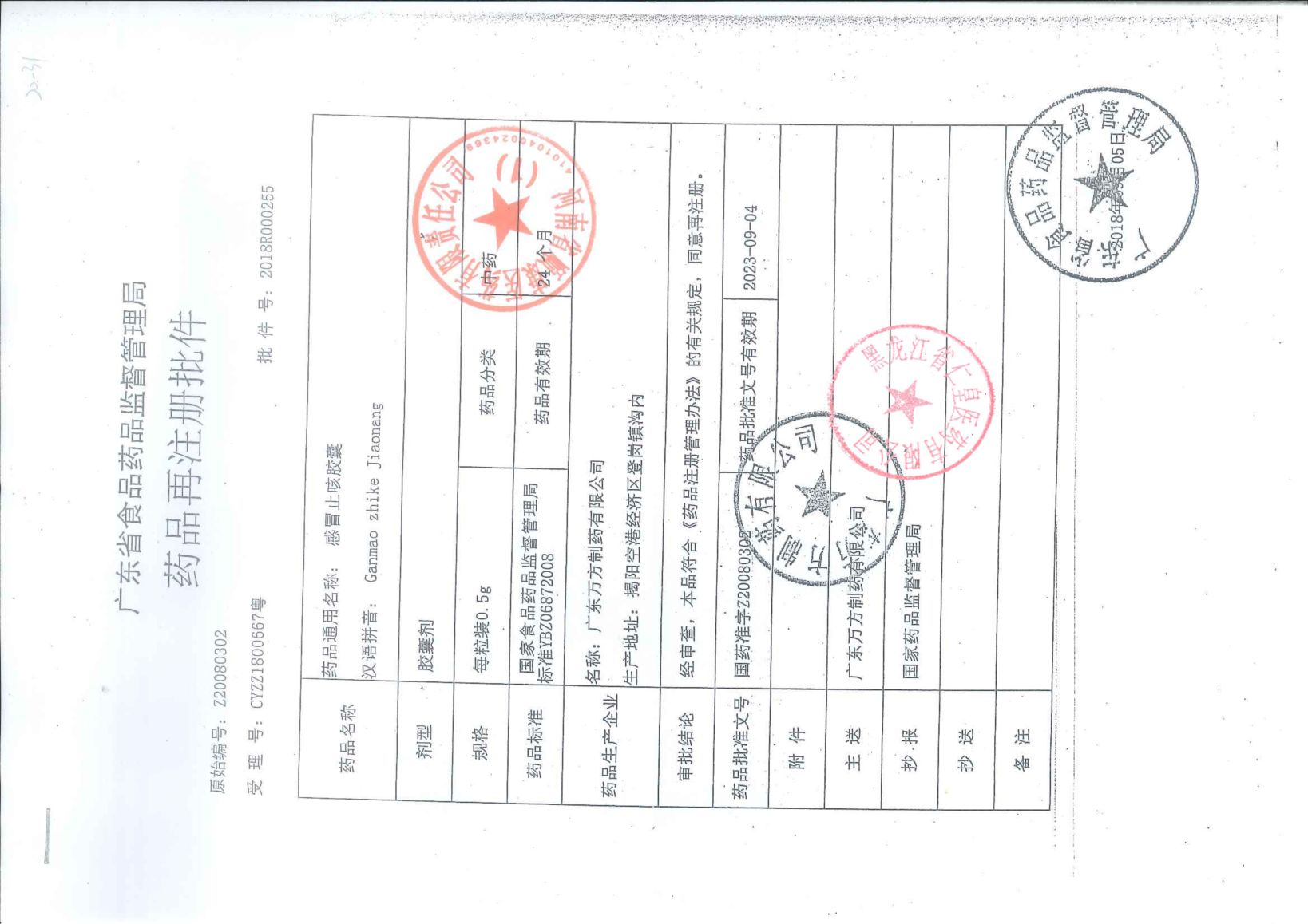 感冒止咳胶囊广东万方