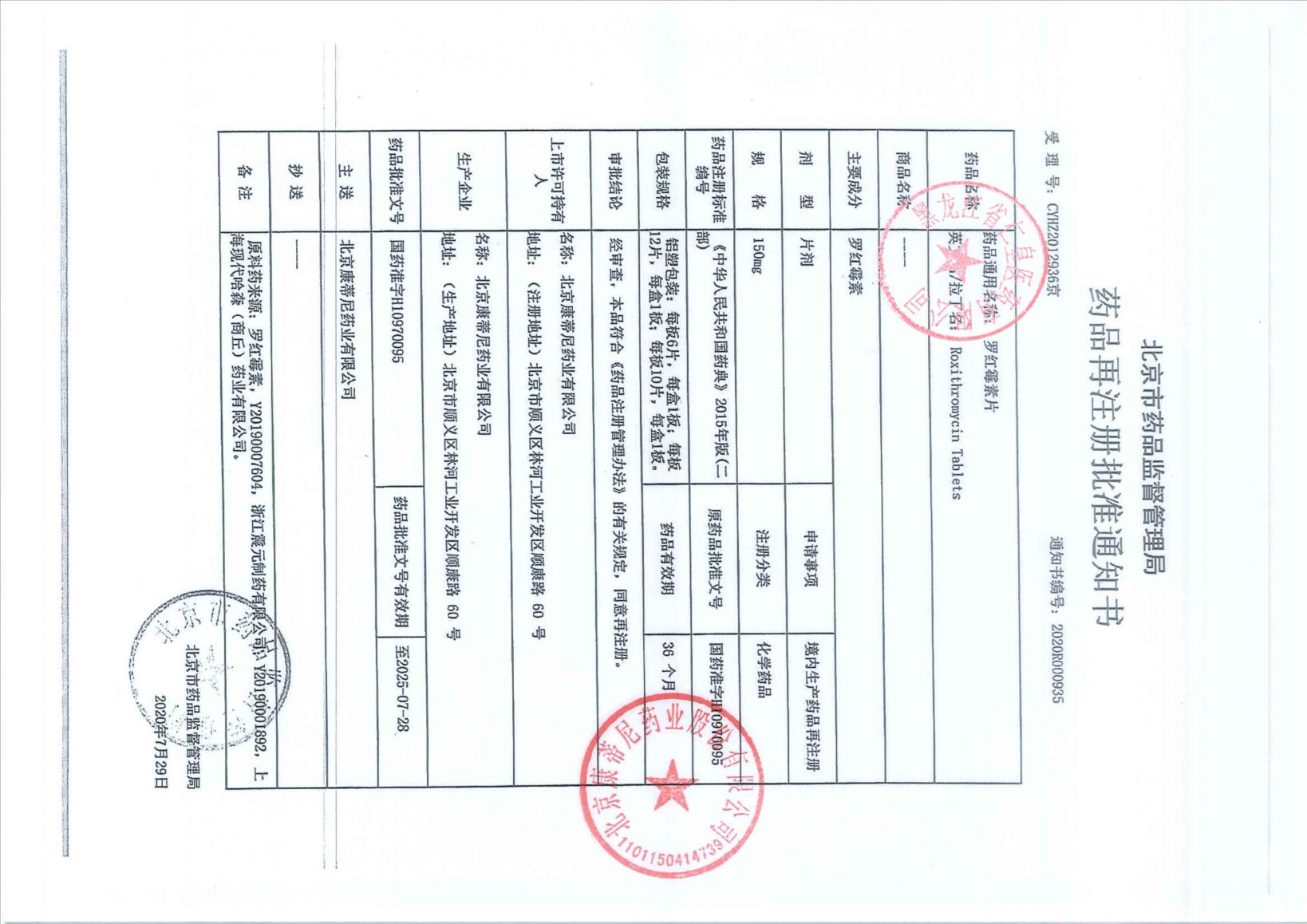 罗红霉素片北京康蒂尼