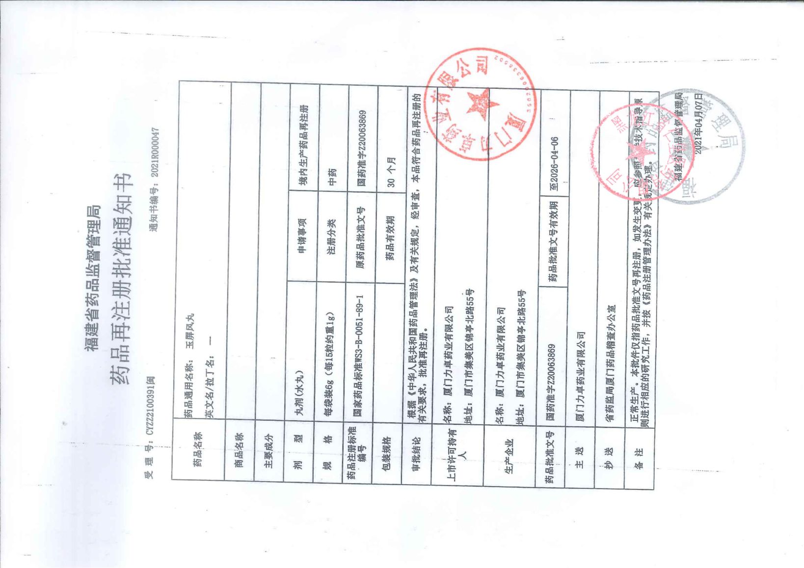 玉屏风丸厦门力卓药业