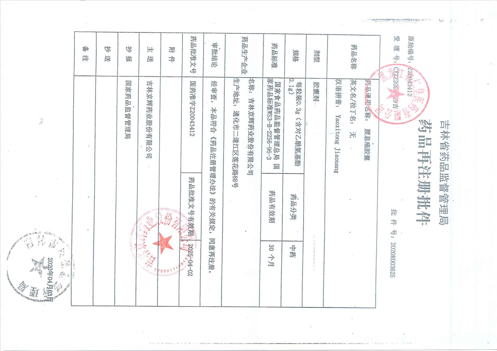 腰息痛胶囊吉林京辉药