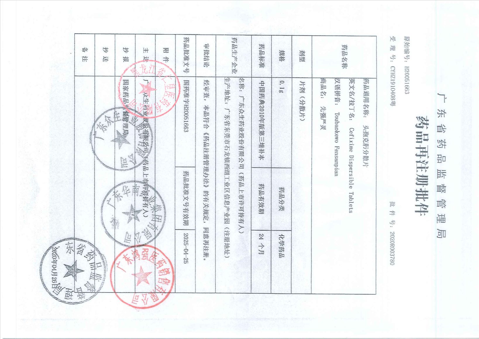 头孢克肟分散片广东华