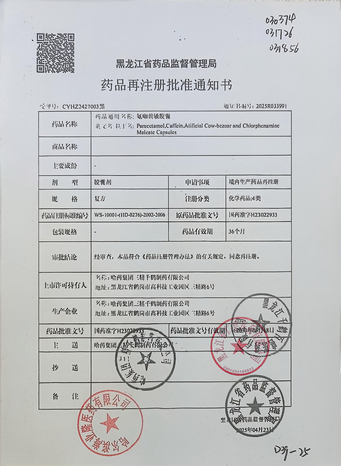 氨咖黄敏胶囊哈药集团