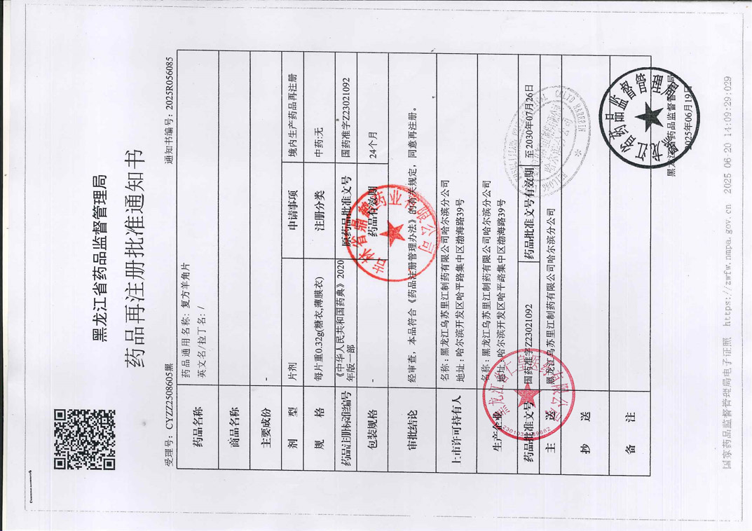 复方羊角片黑龙江乌苏