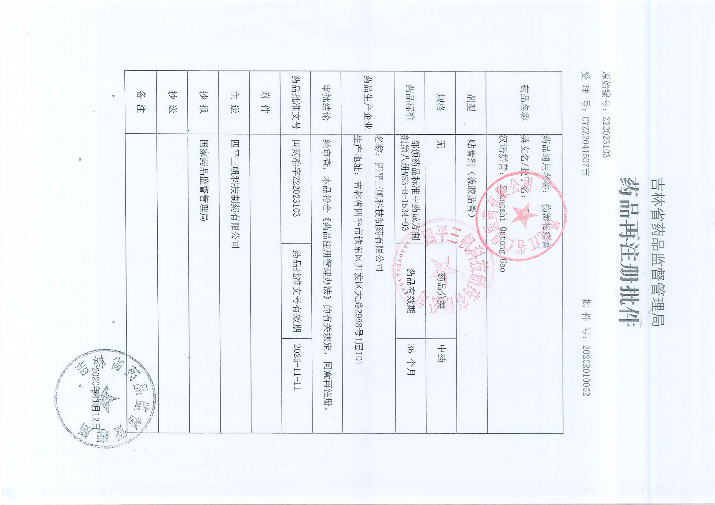 伤湿祛痛膏四平三帆科