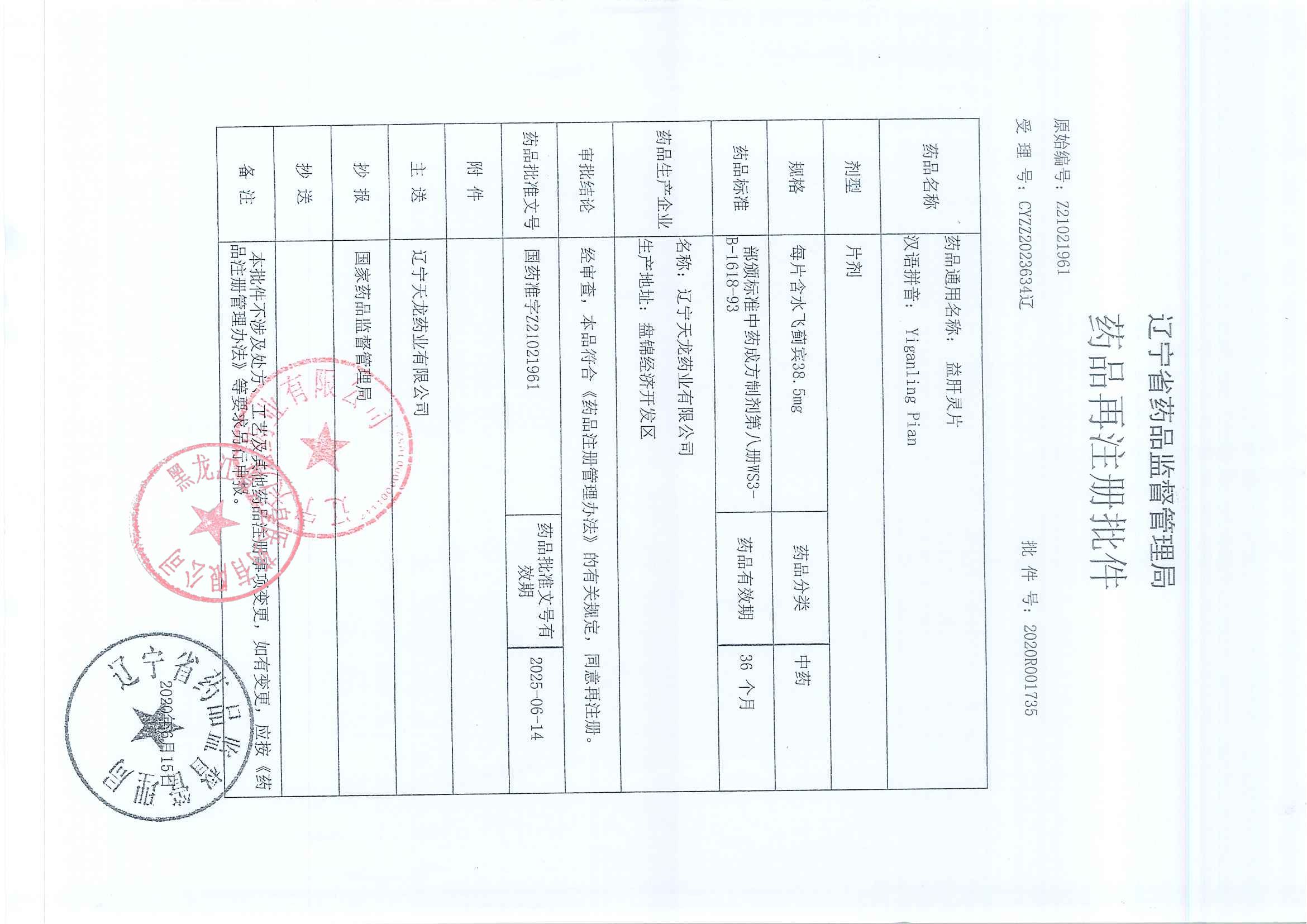 _益肝灵片辽宁天龙药
