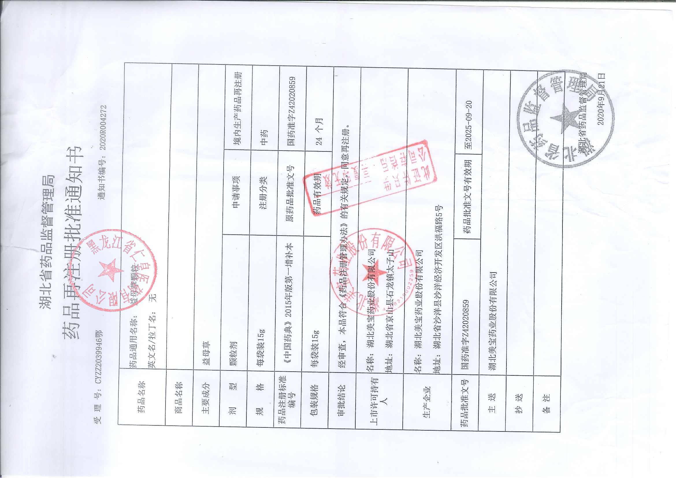 _益母草颗粒湖北美宝