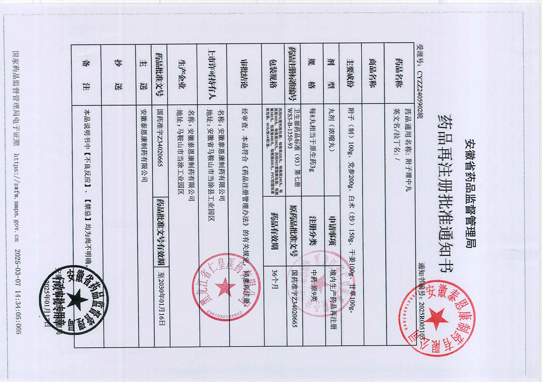 附子理中丸安徽泰恩康
