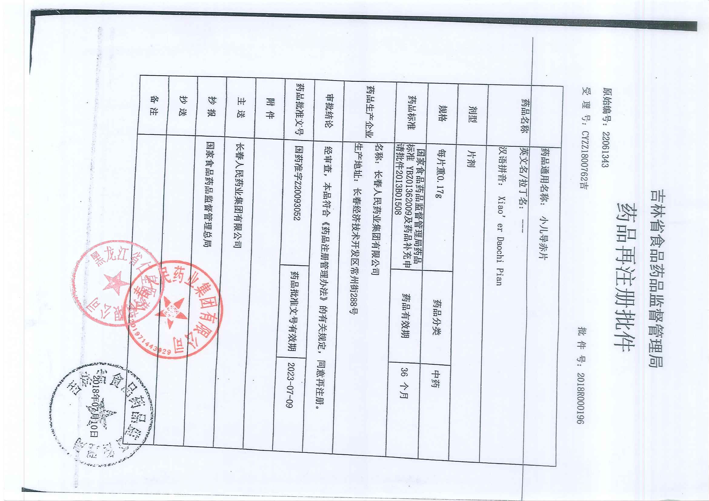 _小儿导赤片长春人民