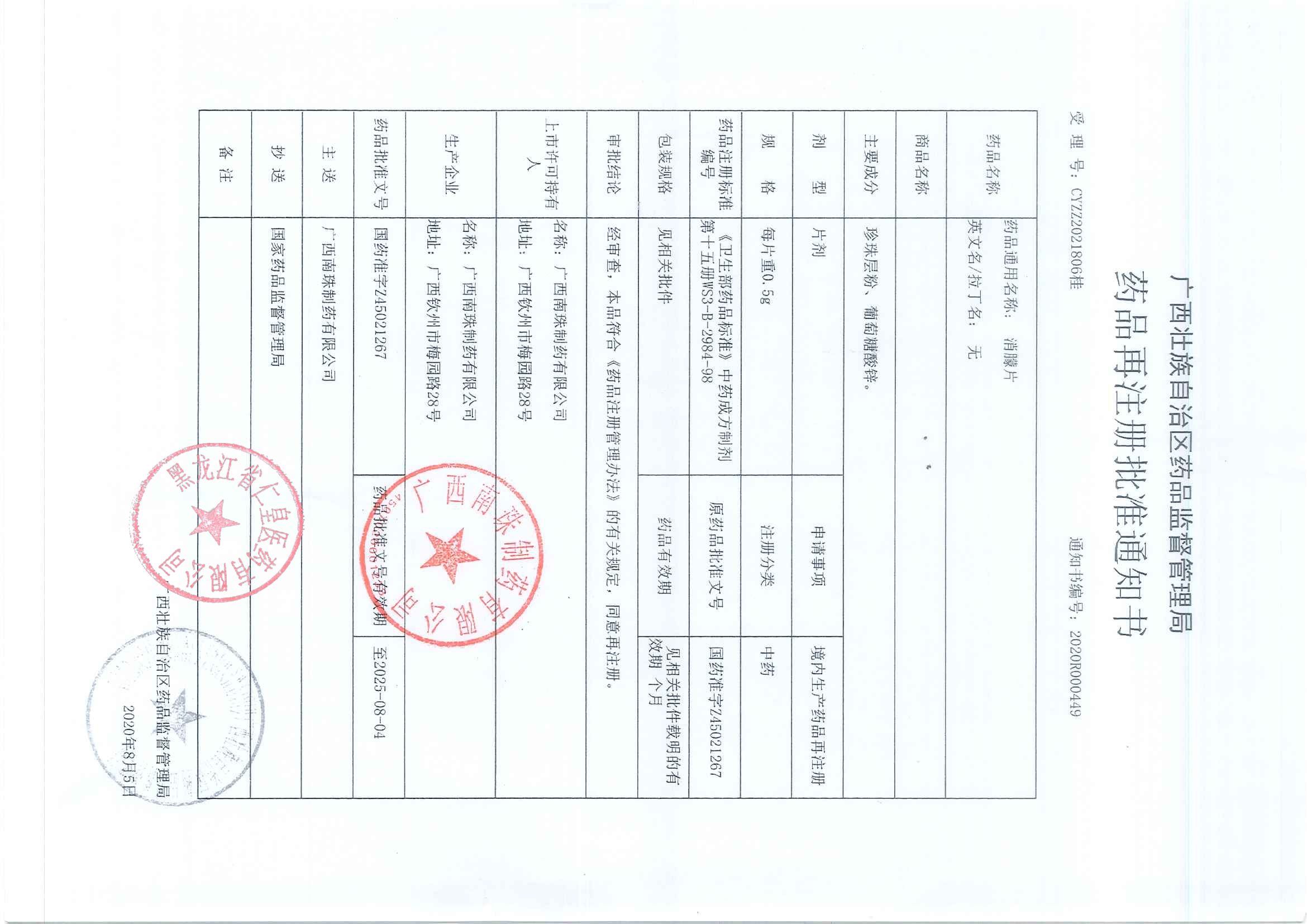 _消朦片广西南珠制药