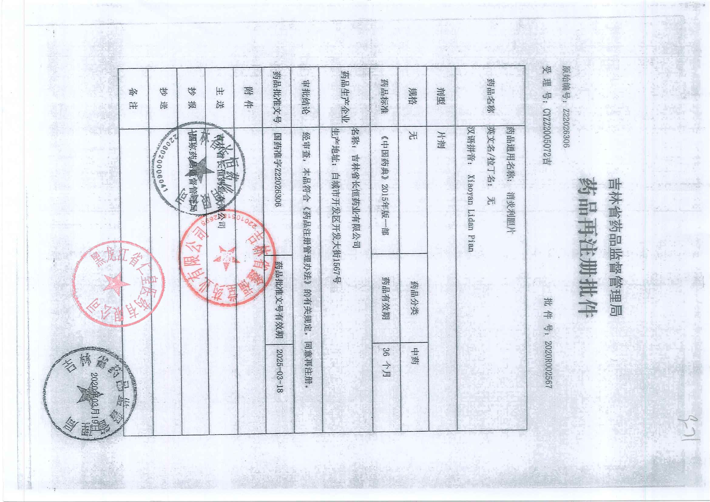 _消炎利胆片吉林省长