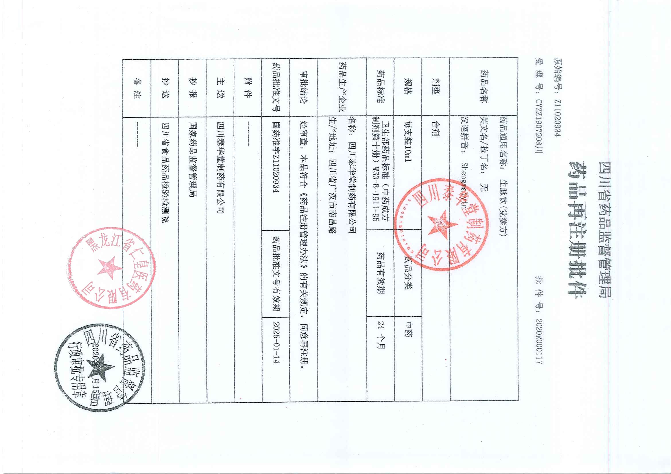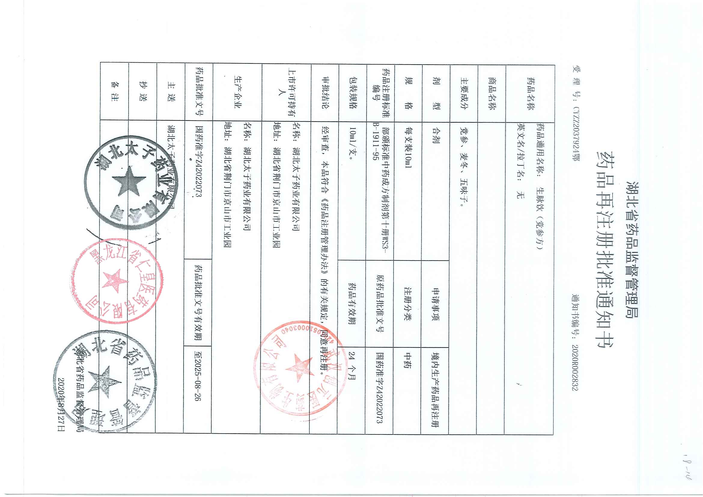 _生脉饮湖北太子药业
