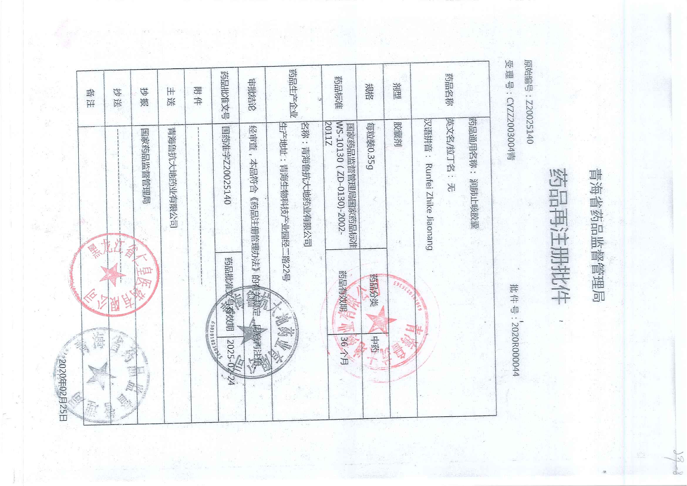 _润肺止咳胶囊青海鲁