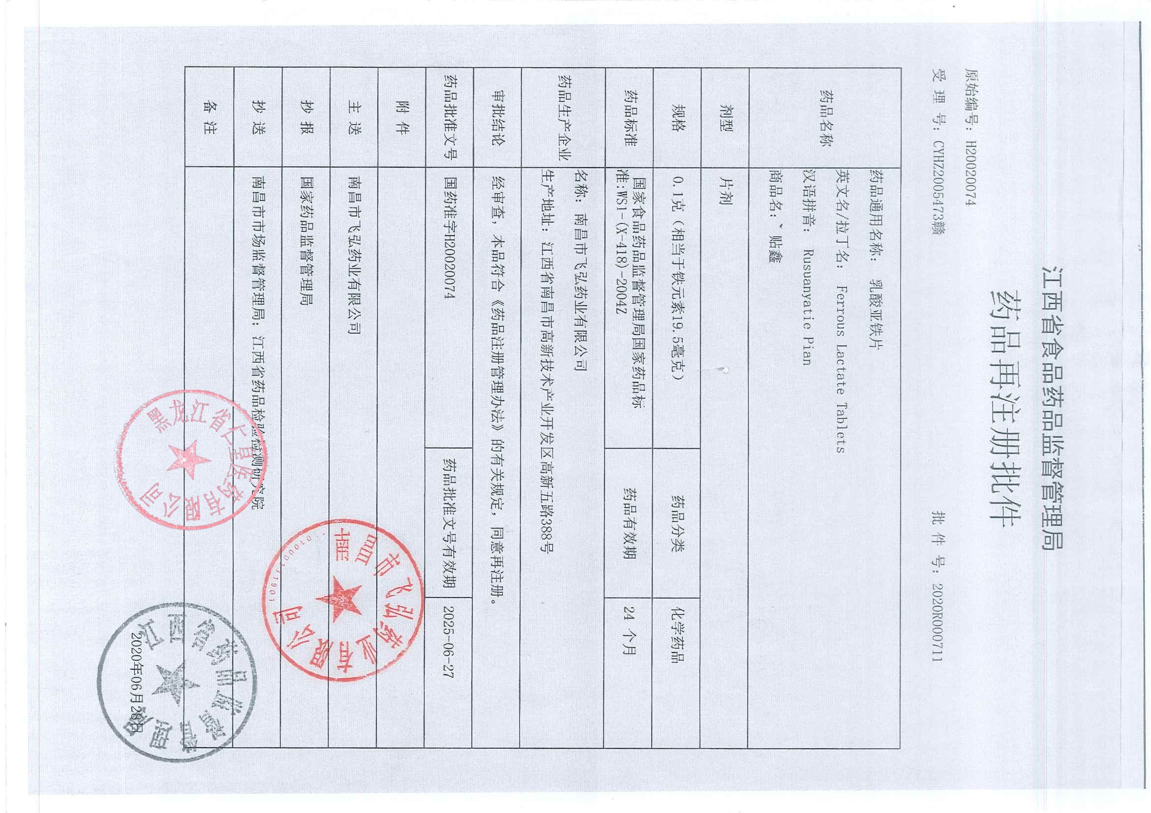 _乳酸亚铁片南昌市飞