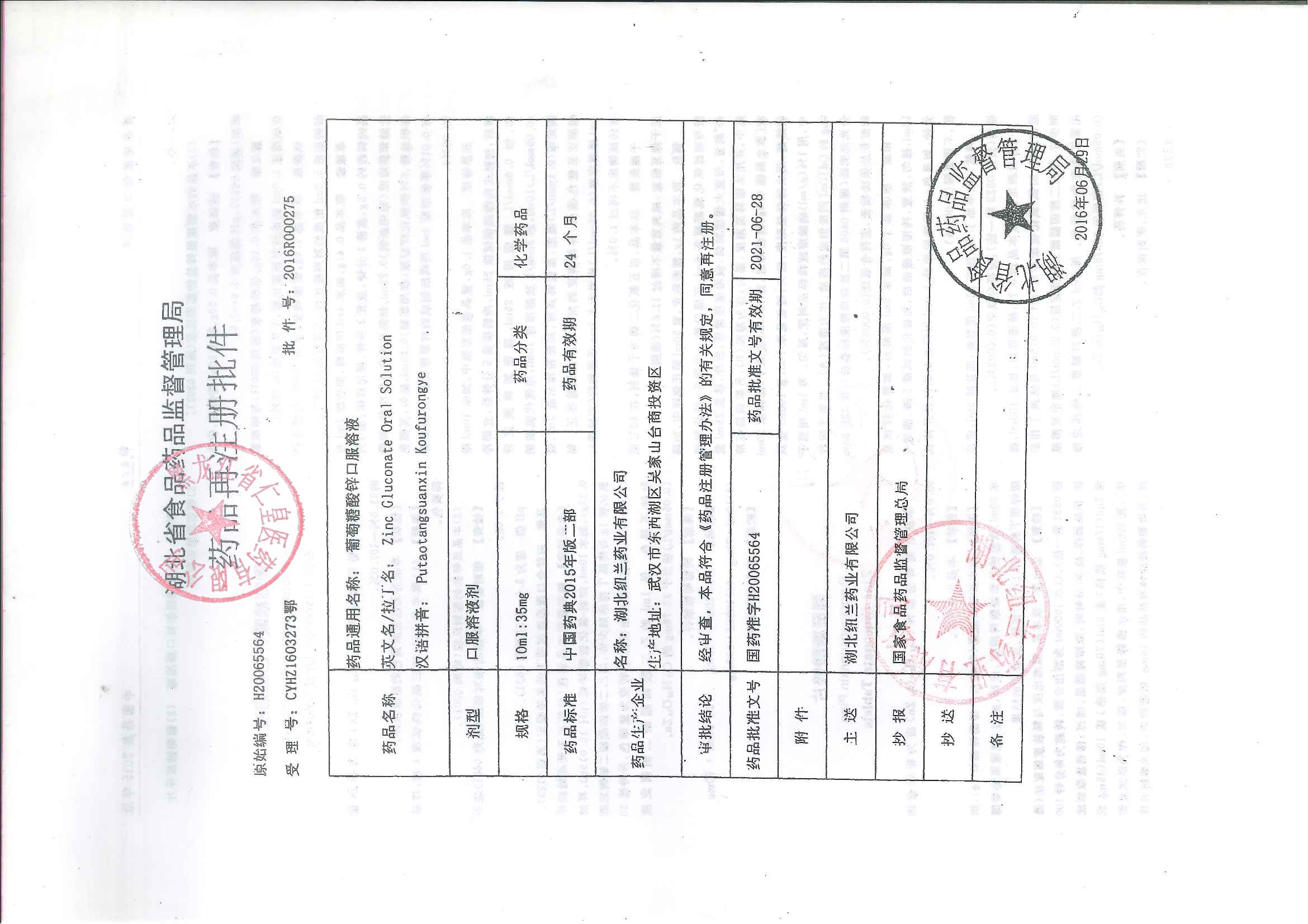 _葡萄糖酸锌口服溶液