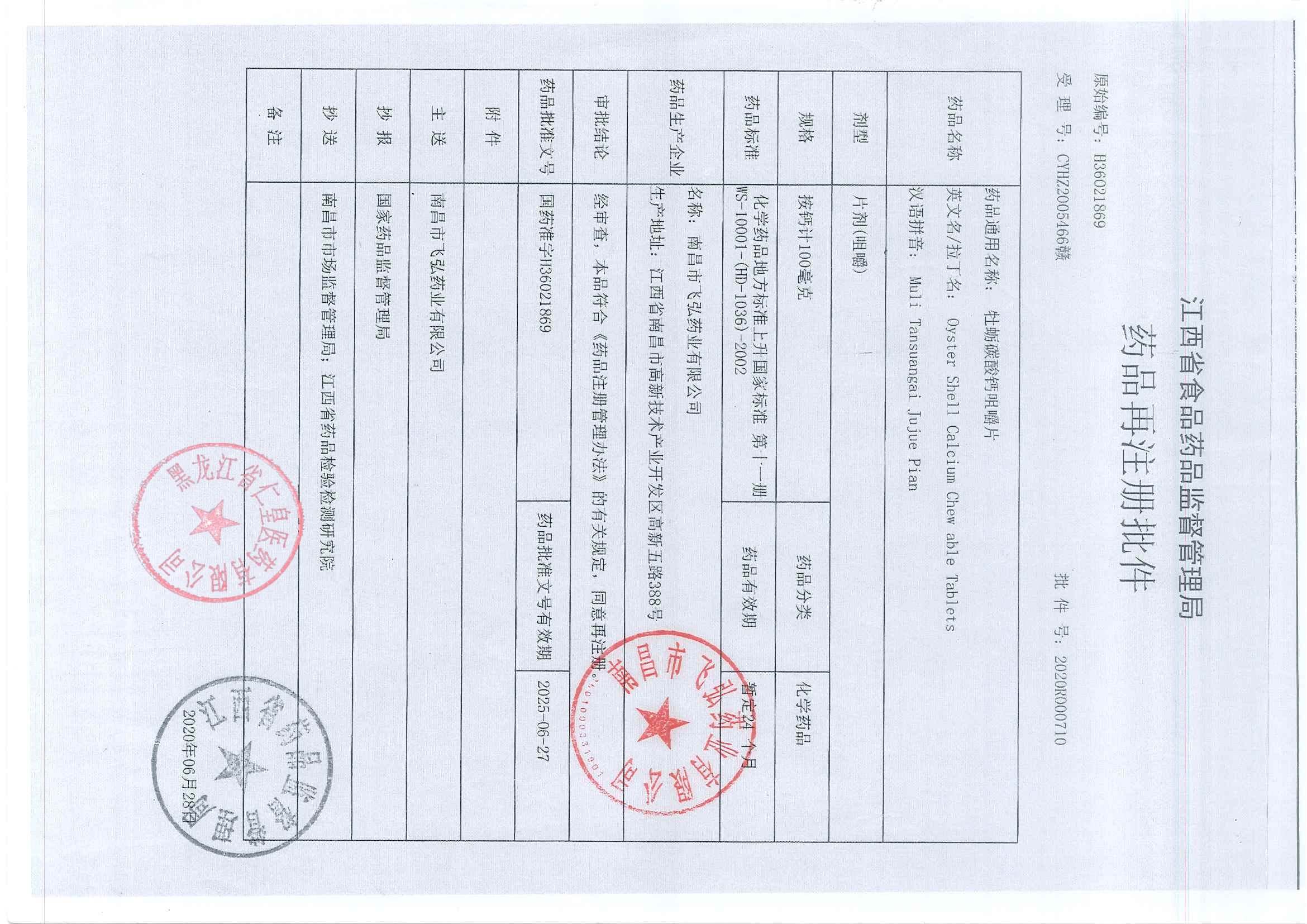 _牡蛎碳酸钙咀嚼片南