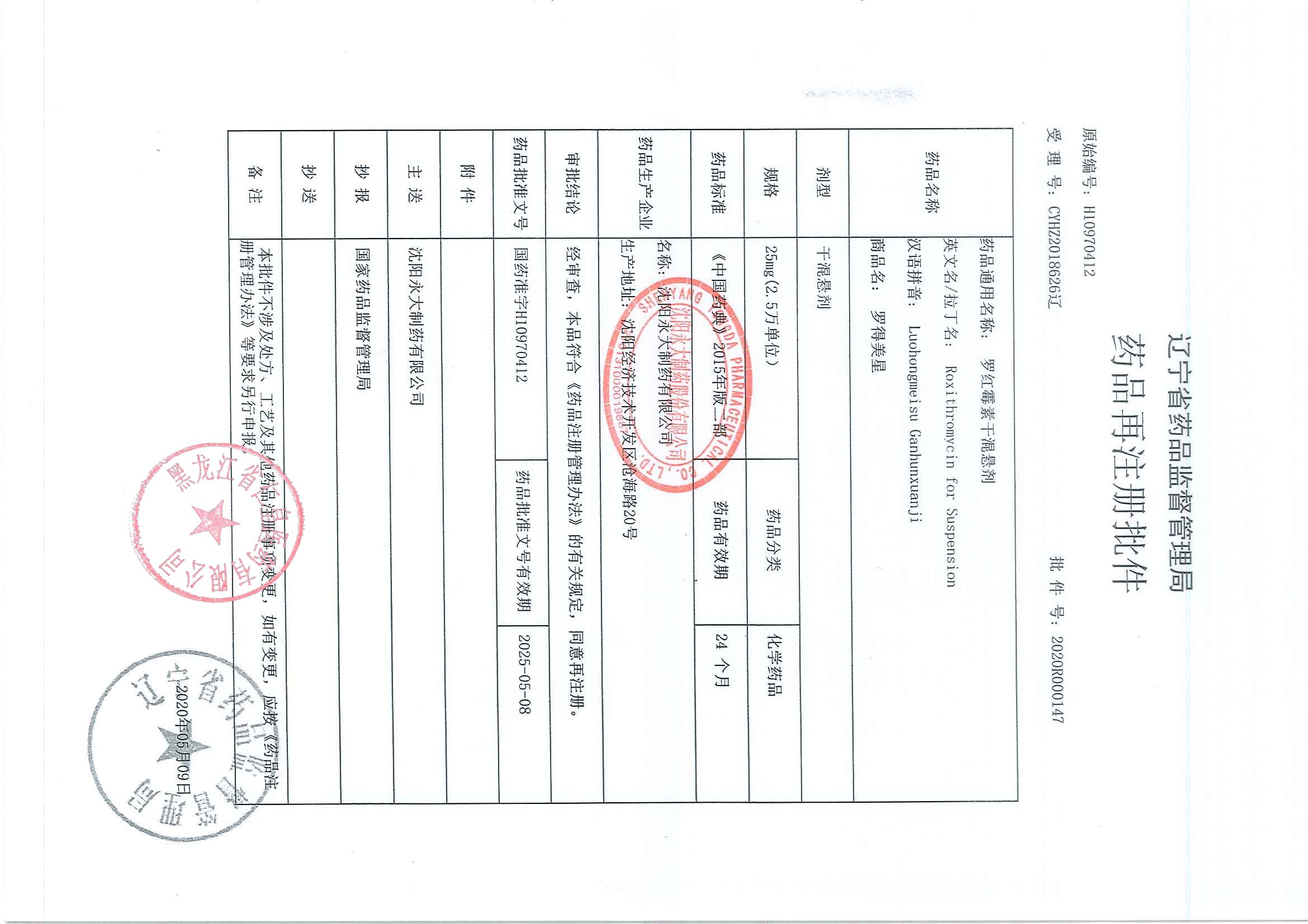 _罗红霉素干混悬剂沈