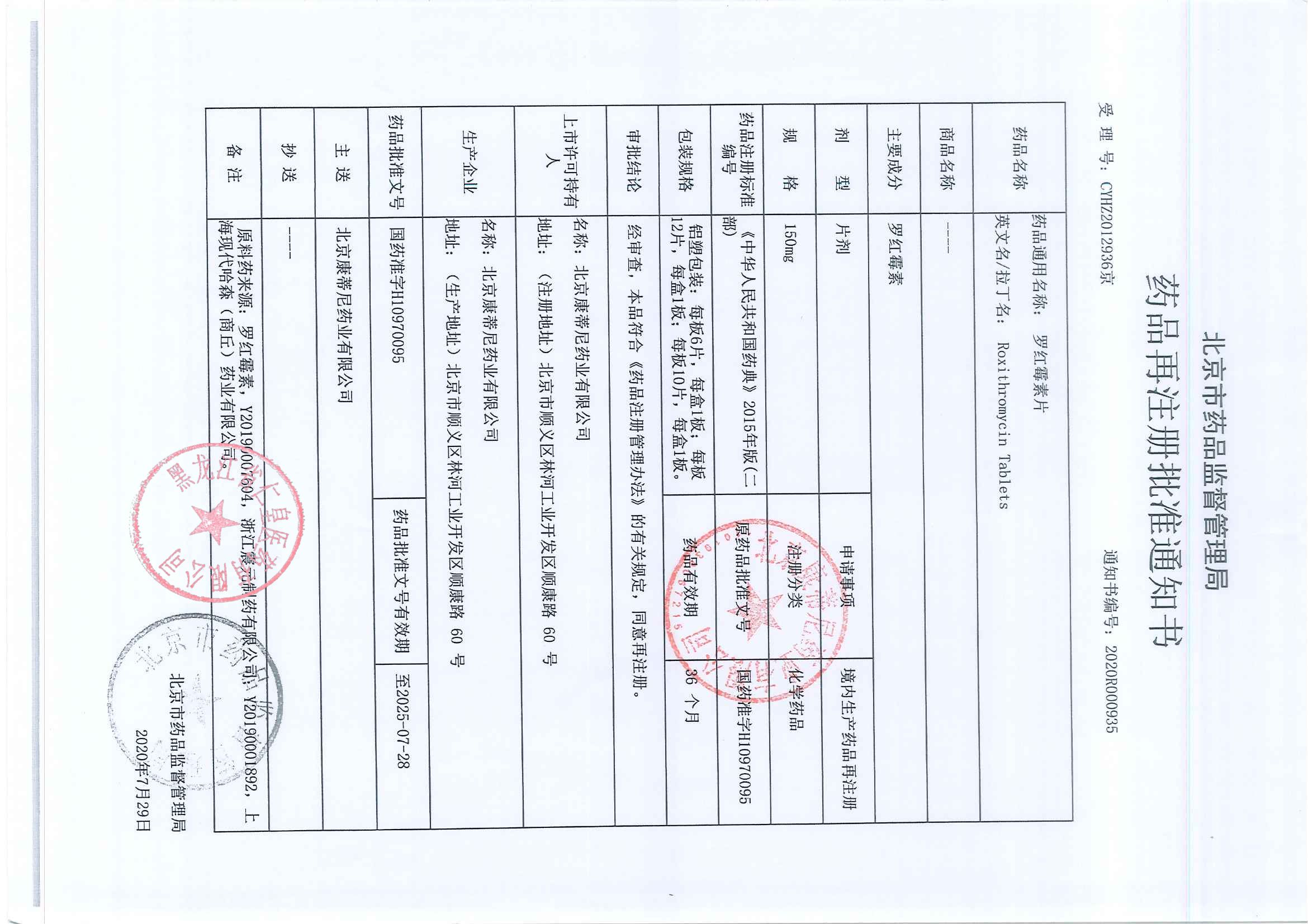 _罗红霉素片北京康蒂