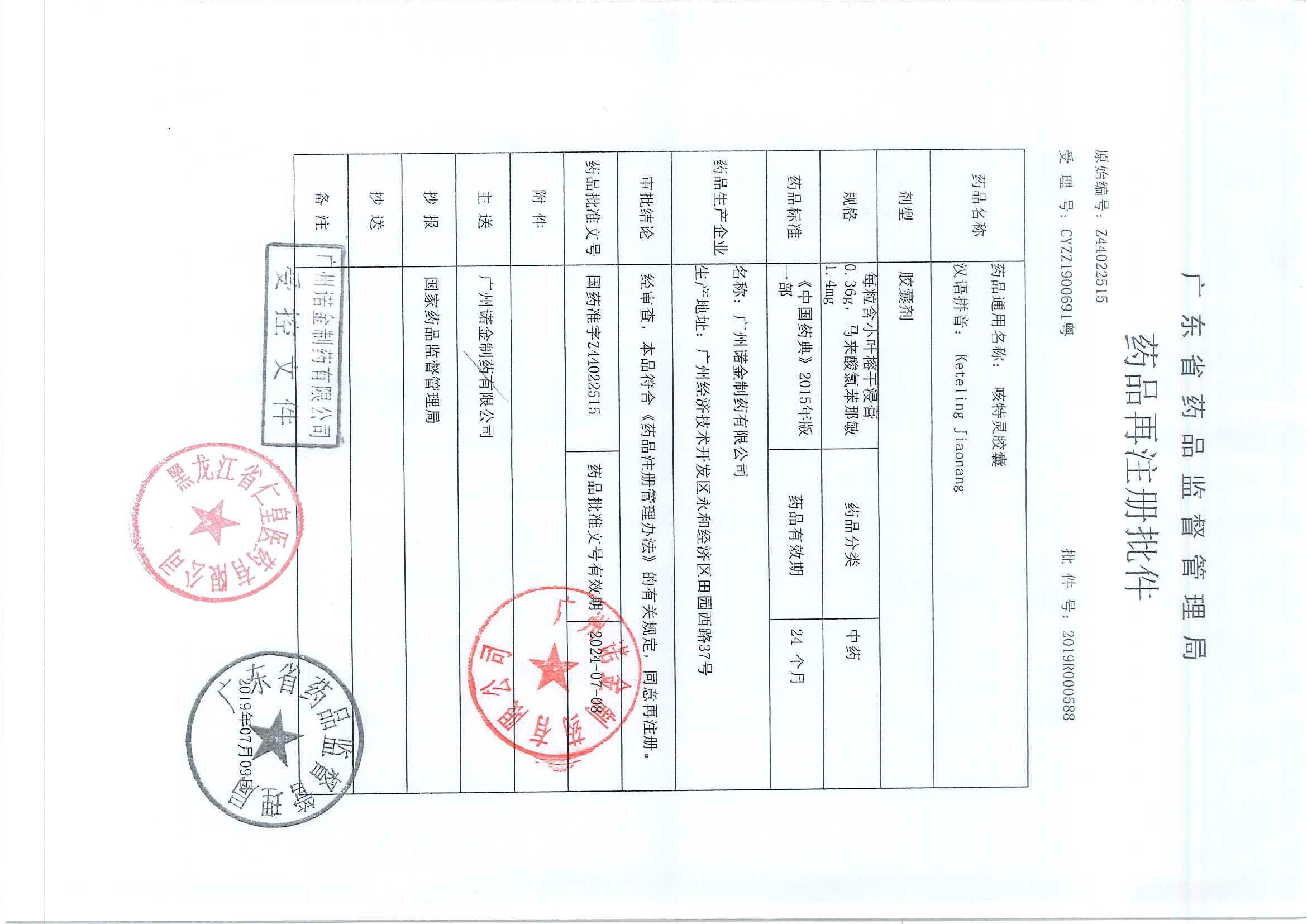 _咳特灵胶囊广州诺金