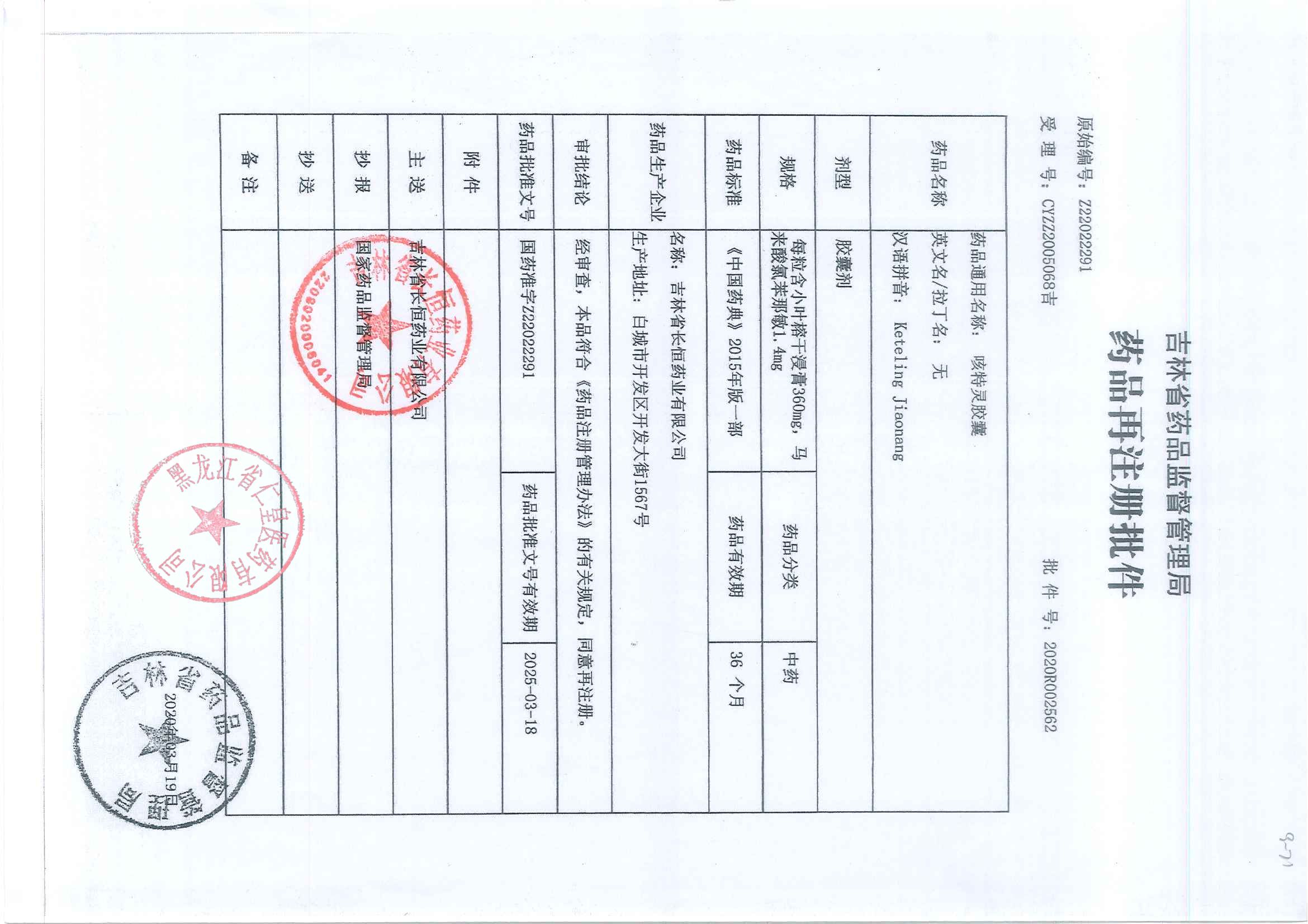 _咳特灵胶囊吉林省长
