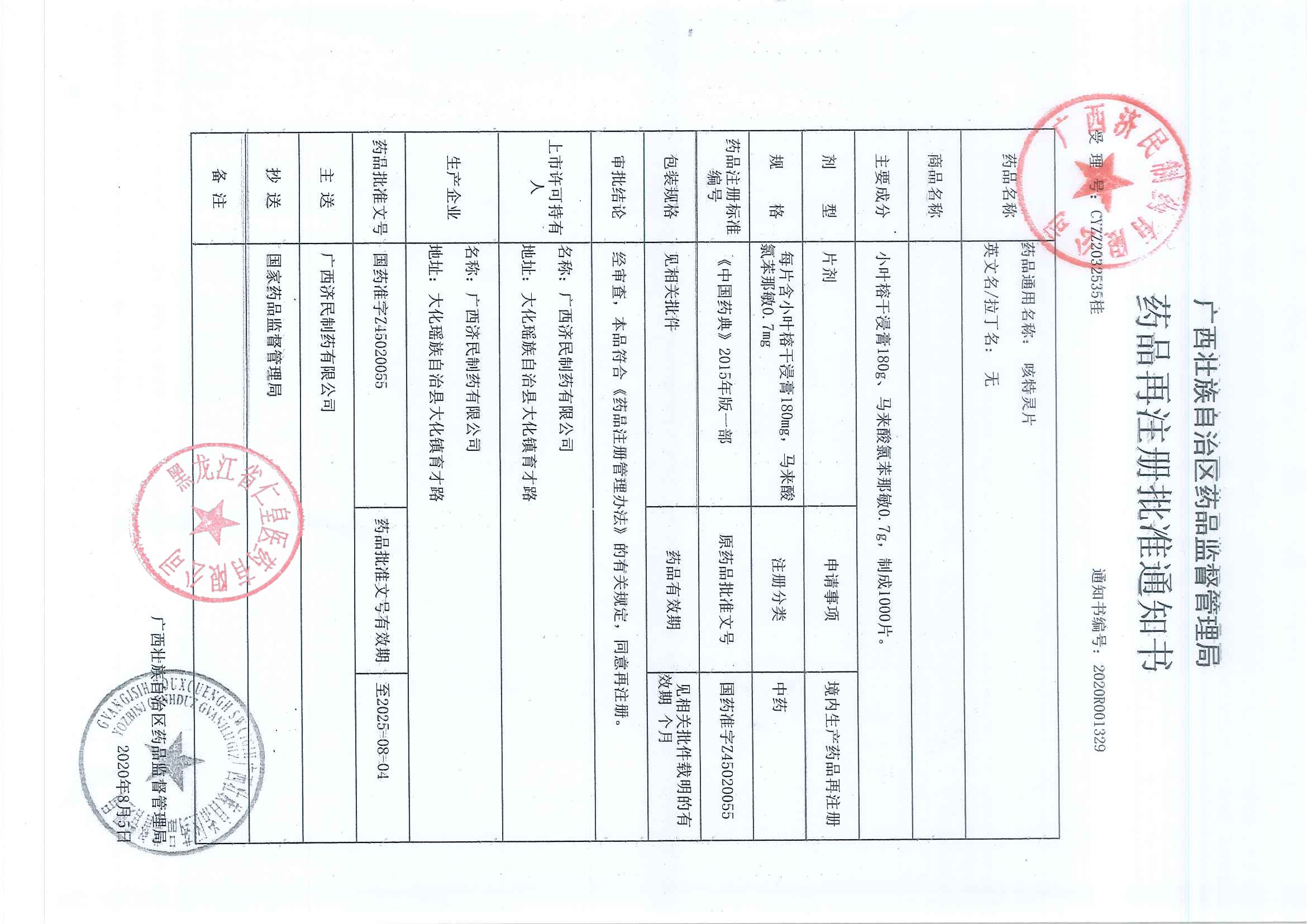 _咳特灵片广西济民制