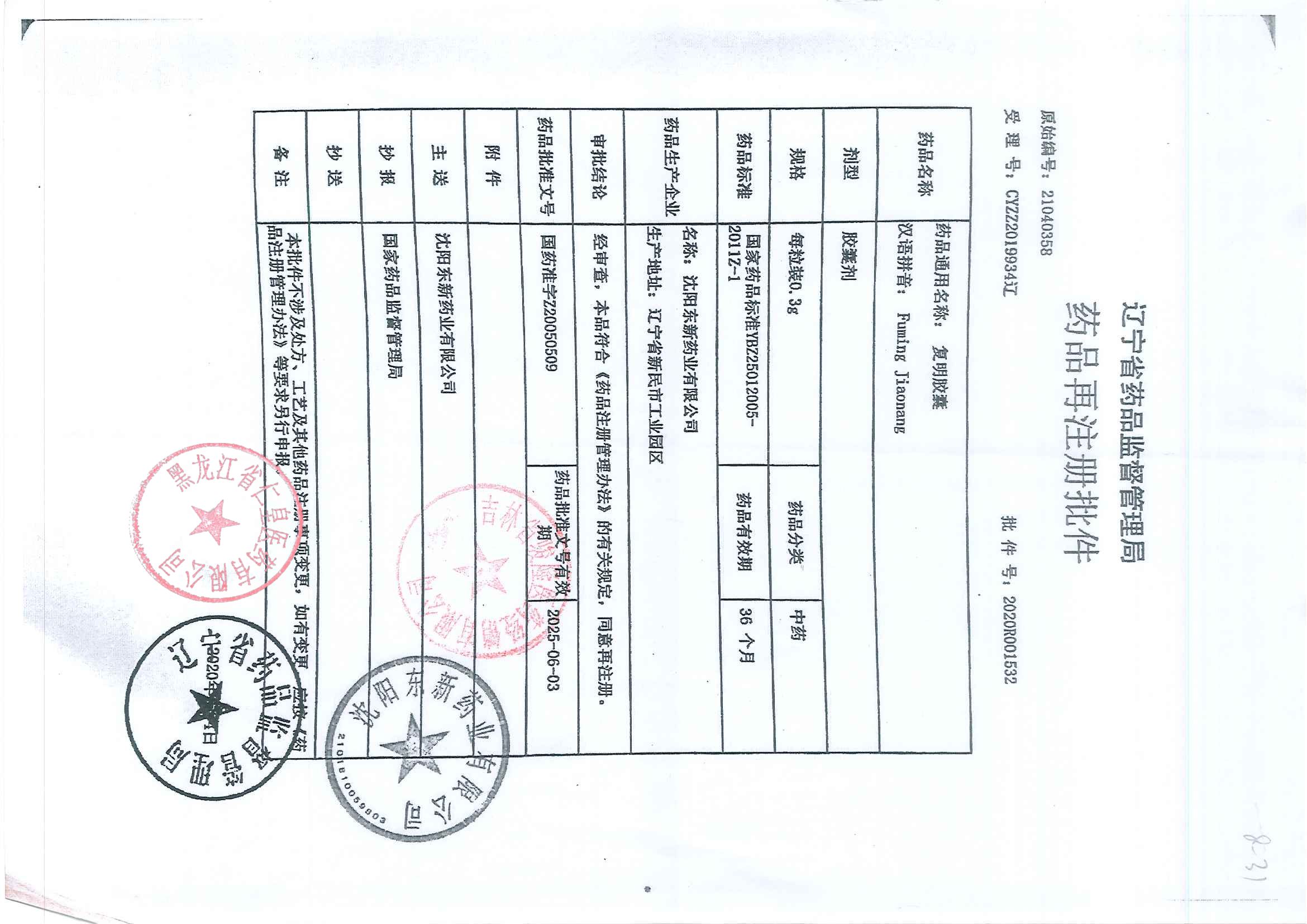 _复明胶囊沈阳东新药