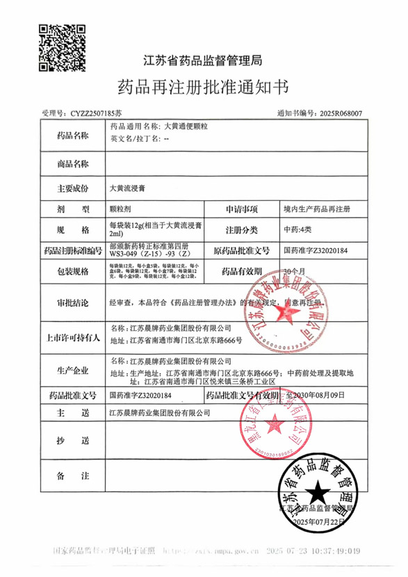 大黄通便颗粒江苏晨牌