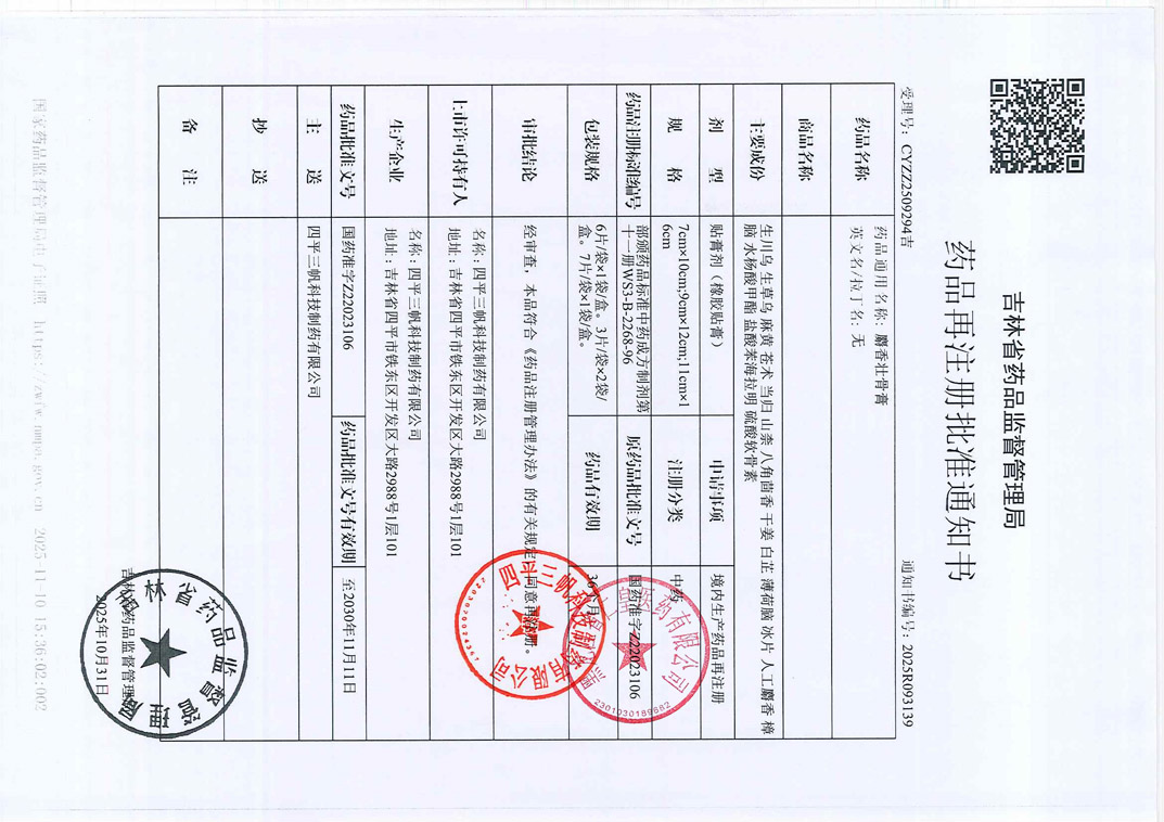 麝香壮骨膏四平三帆科