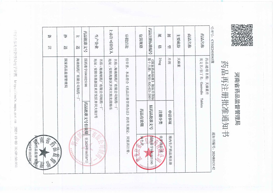 天麻素片海南制药厂有
