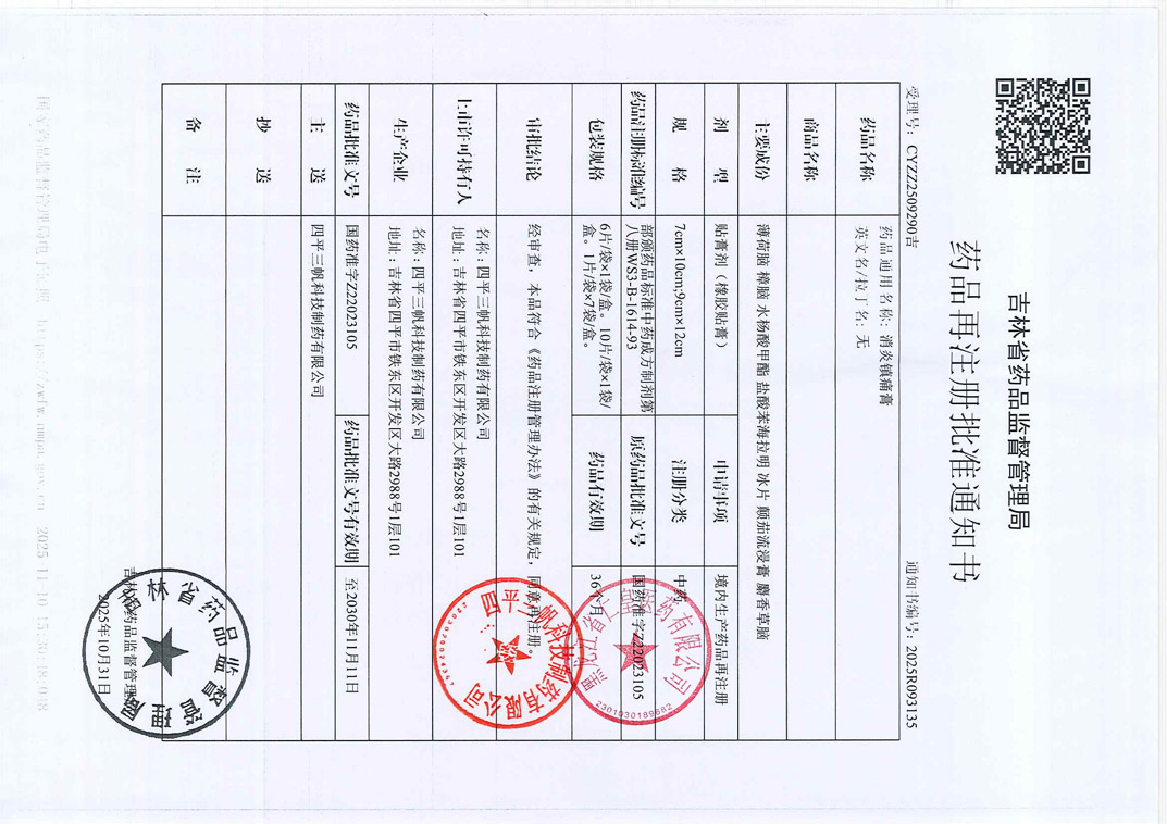 消炎镇痛膏四平三帆科