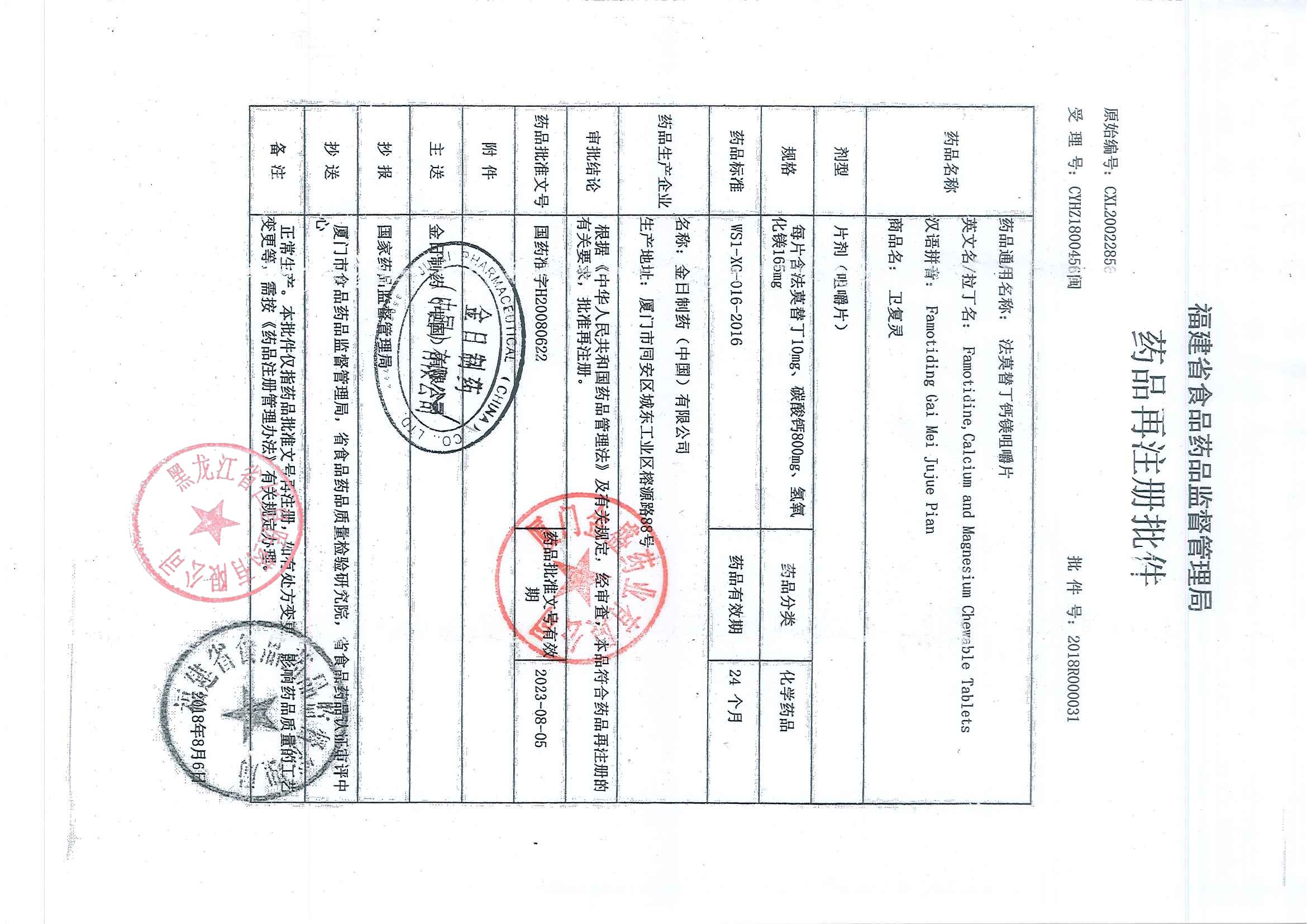 _法莫替丁钙镁咀嚼片