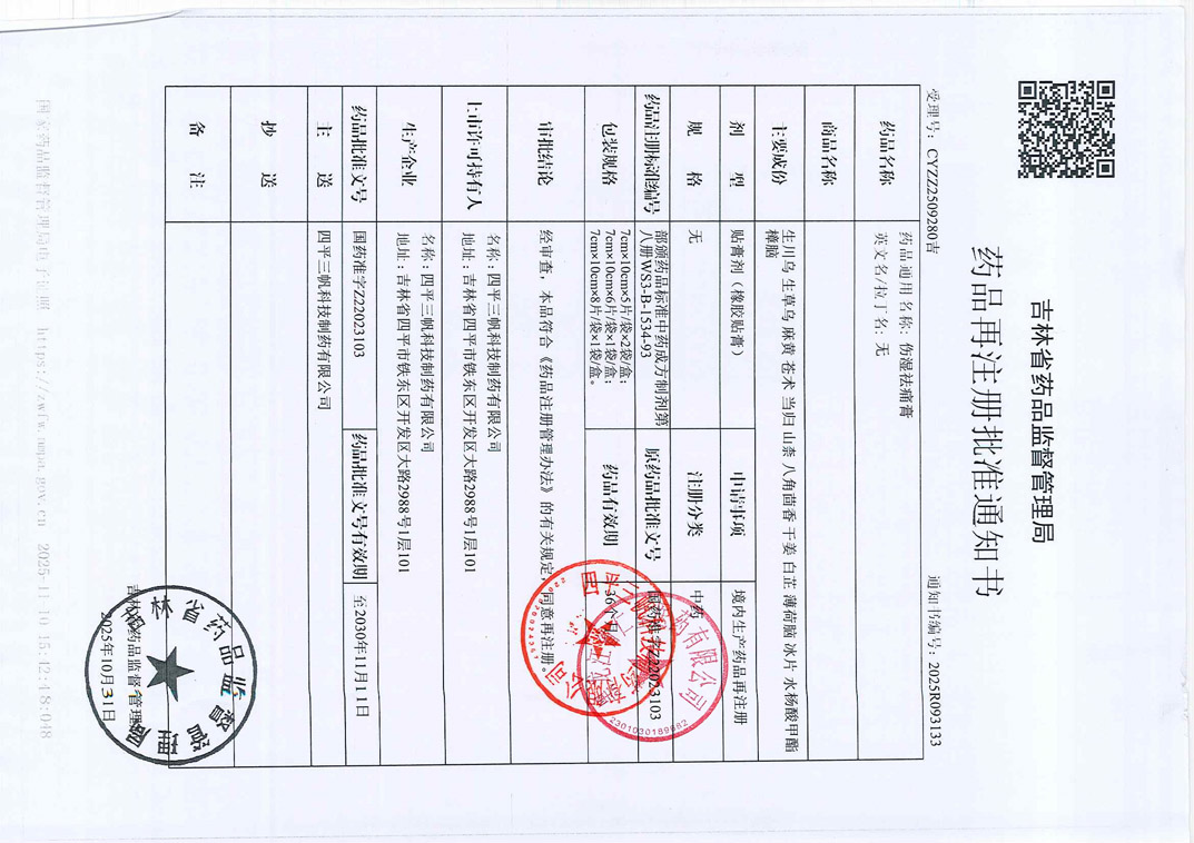 伤湿祛痛膏四平三帆科