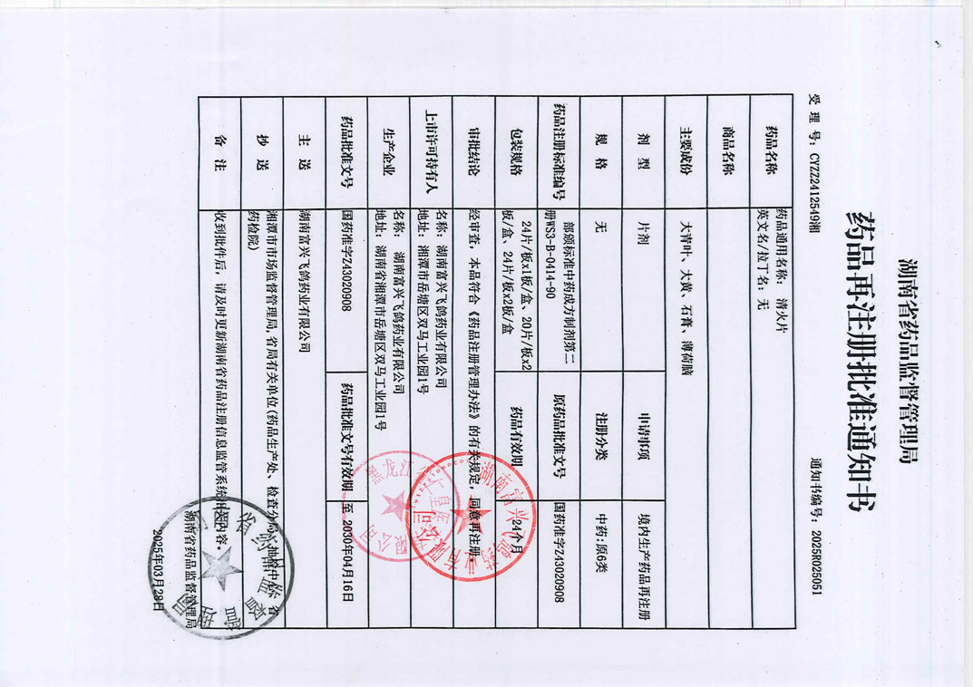 清火片湖南富兴飞鸽药