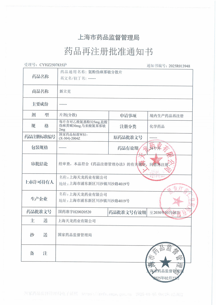 氨酚伪麻那敏分散片上